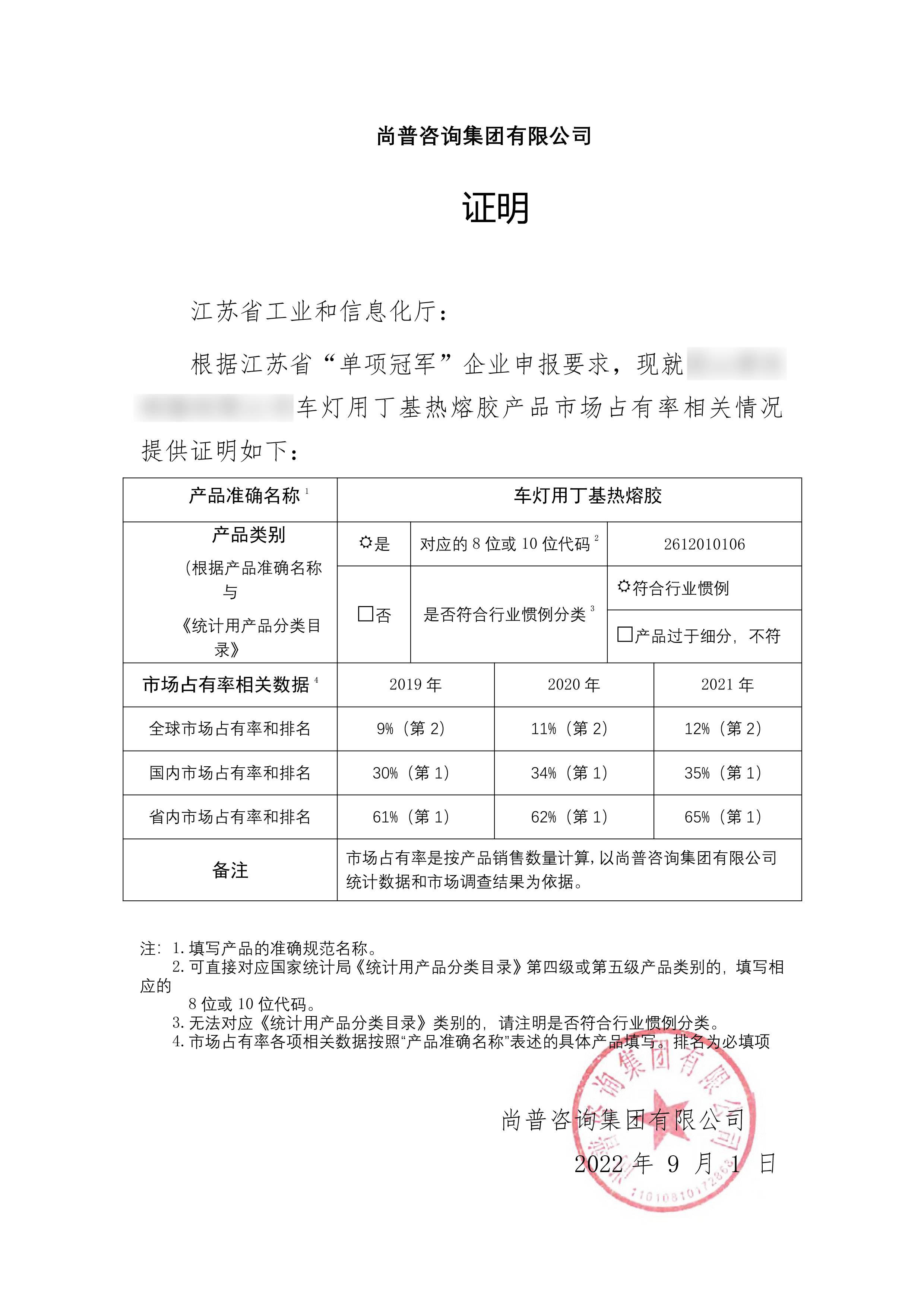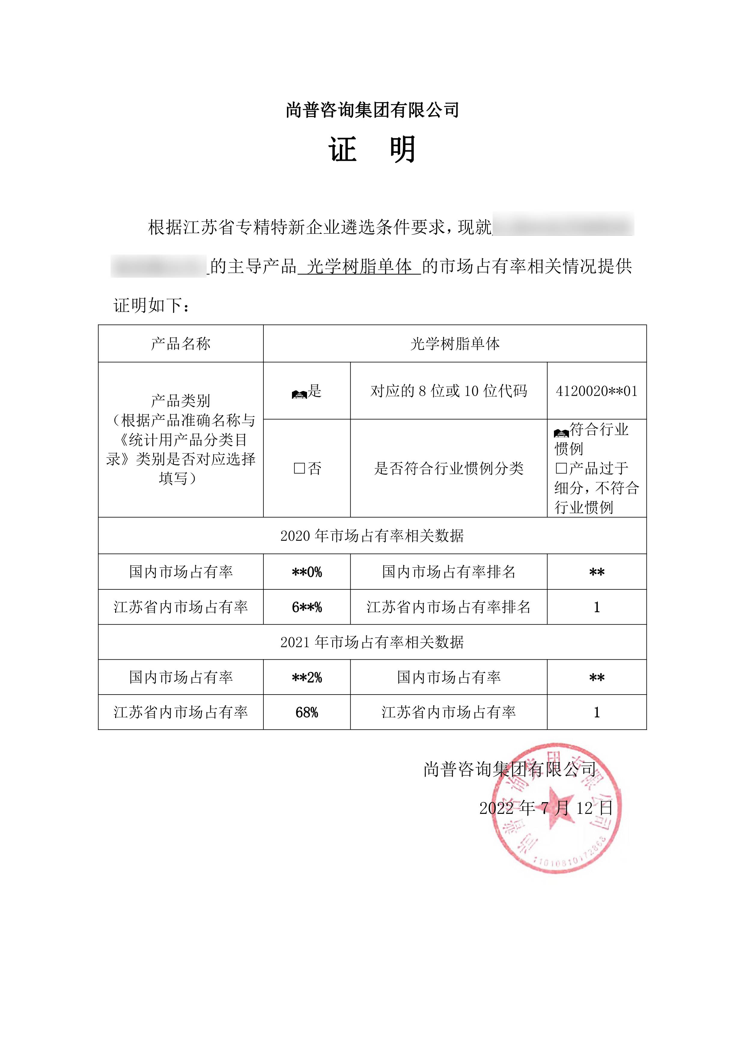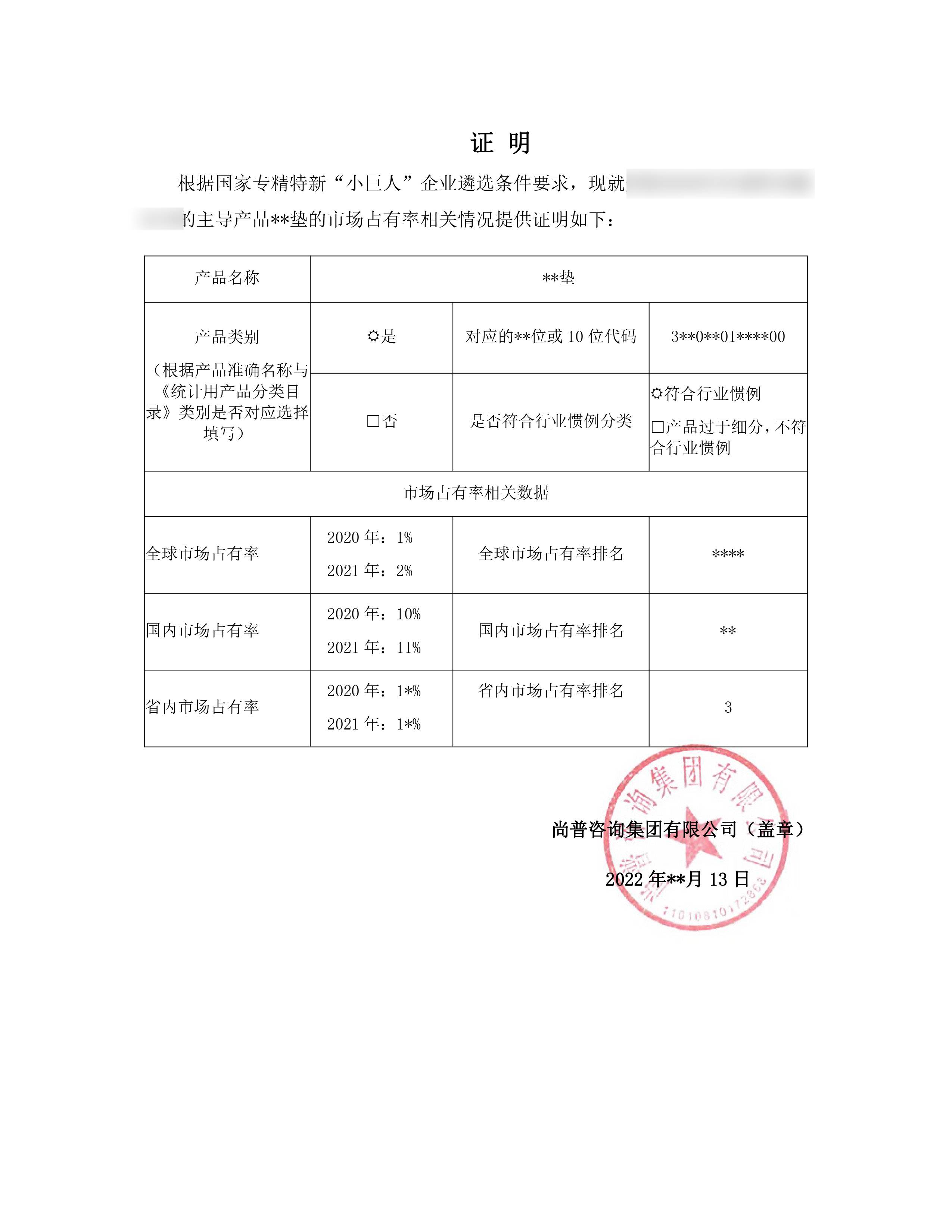 市场占有率证明